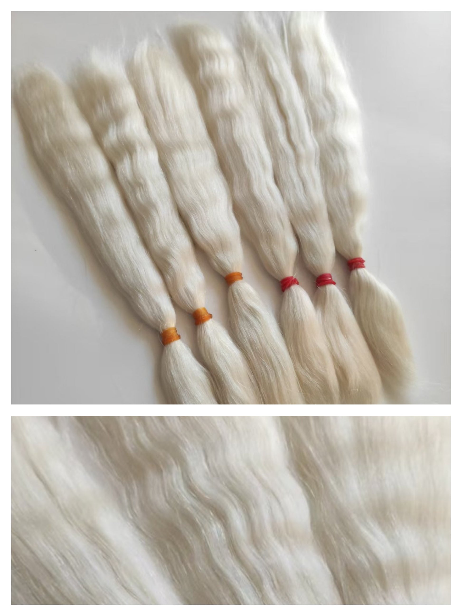 Zacht en mooi wit/blond Mohair geitenhaar . Voor het maken van babyhaartjes aan de voorkant van een haar werk. Kan geverfd , gekruld worden.