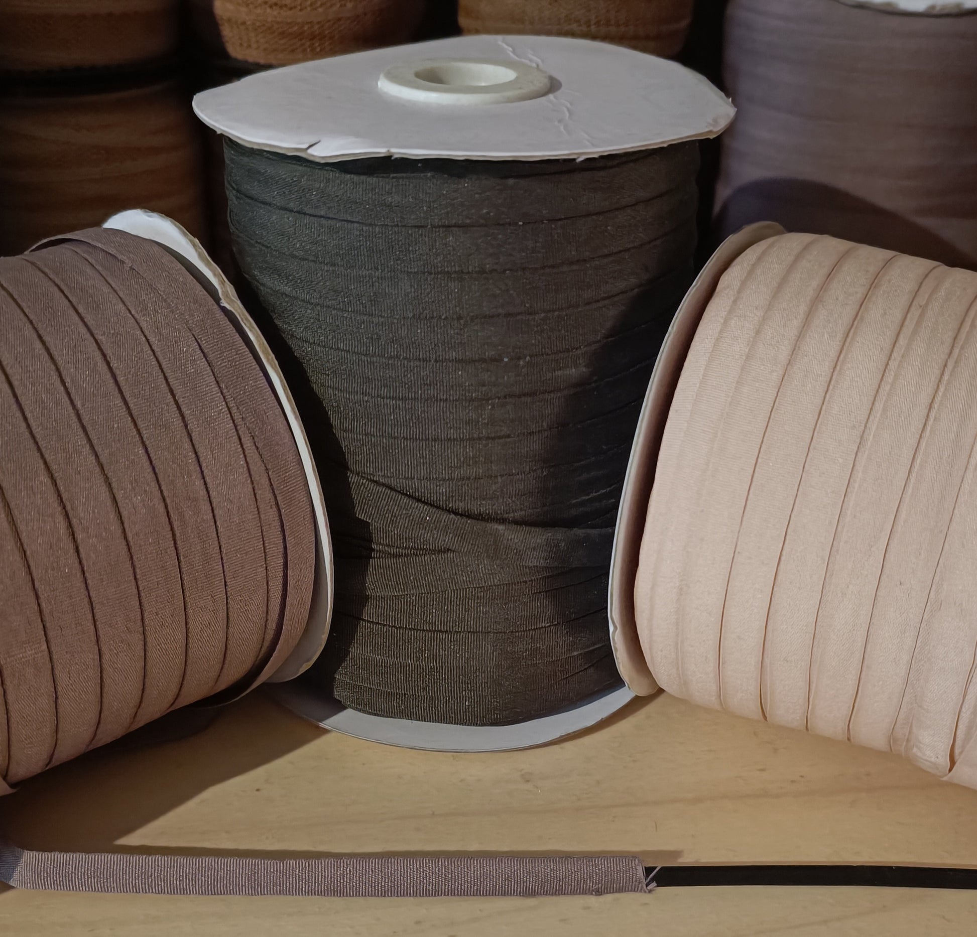 Mooi dubbel laags (hol) polyester baleinband . Voor baleinen zie : Haarwerk materialen.