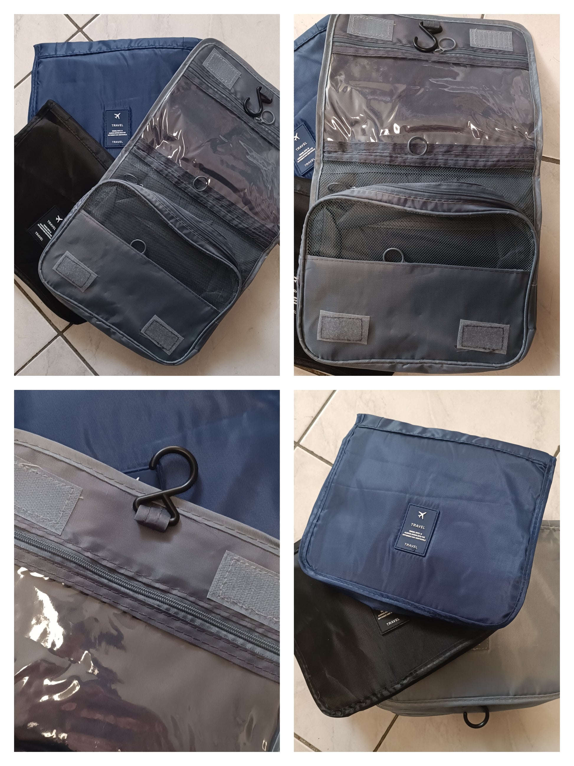 Make-up toilettas (reistas) met 3 verschillende ruime vakken voor het opbergen van je cosmetica voor op vakantie of voor je werk in Theater en film. In uitgeklapte vorm kan je met de haak de tas makkelijk ophangen en is alles wat je nodig hebt zichtbaar. Het materiaal is duurzaam en makkelijk schoon te maken en heeft 3 ritsen en klittenband sluiting.