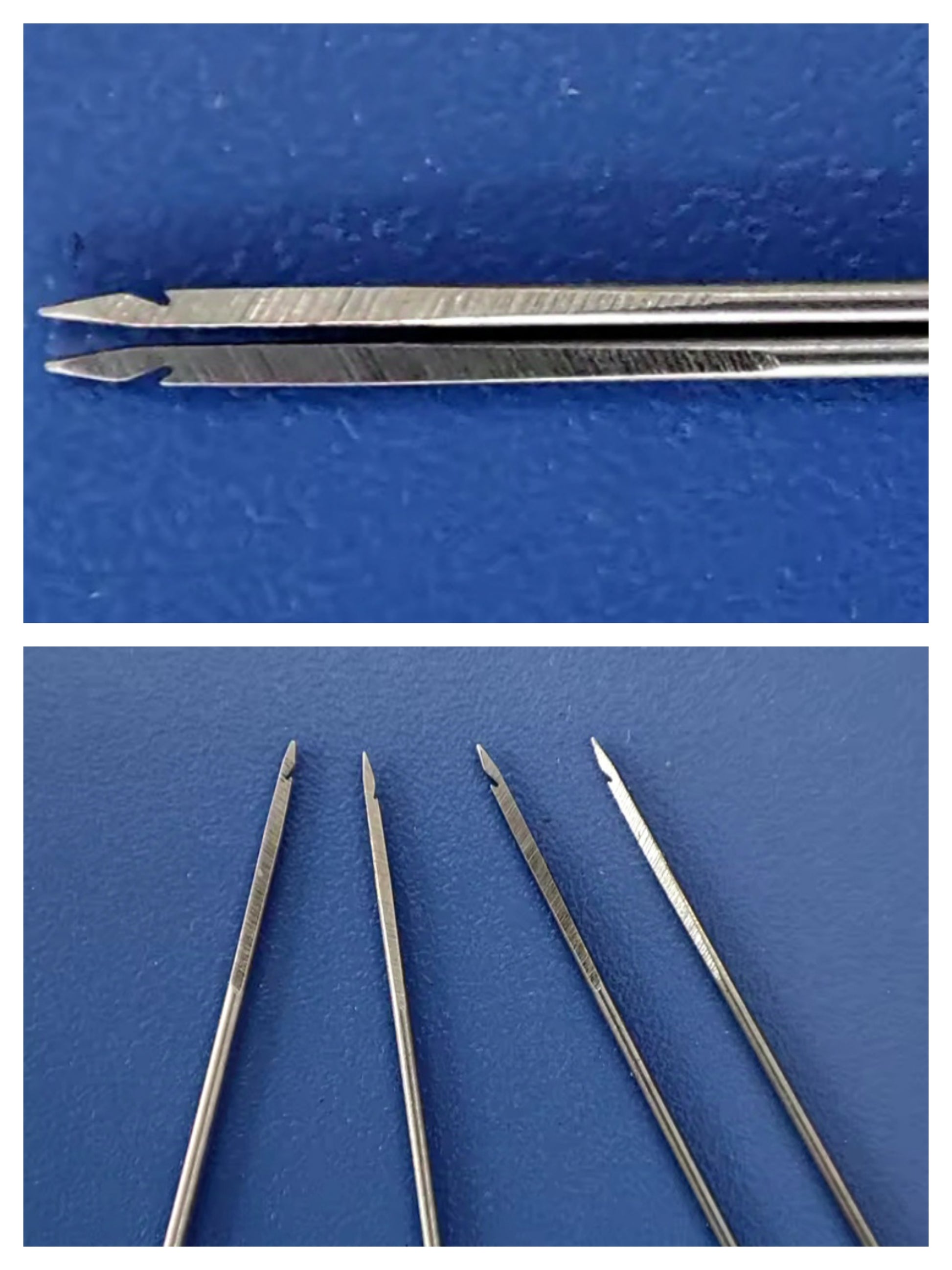 +/- 3cm lang. Past ook in gewone knoopnaald houder.
