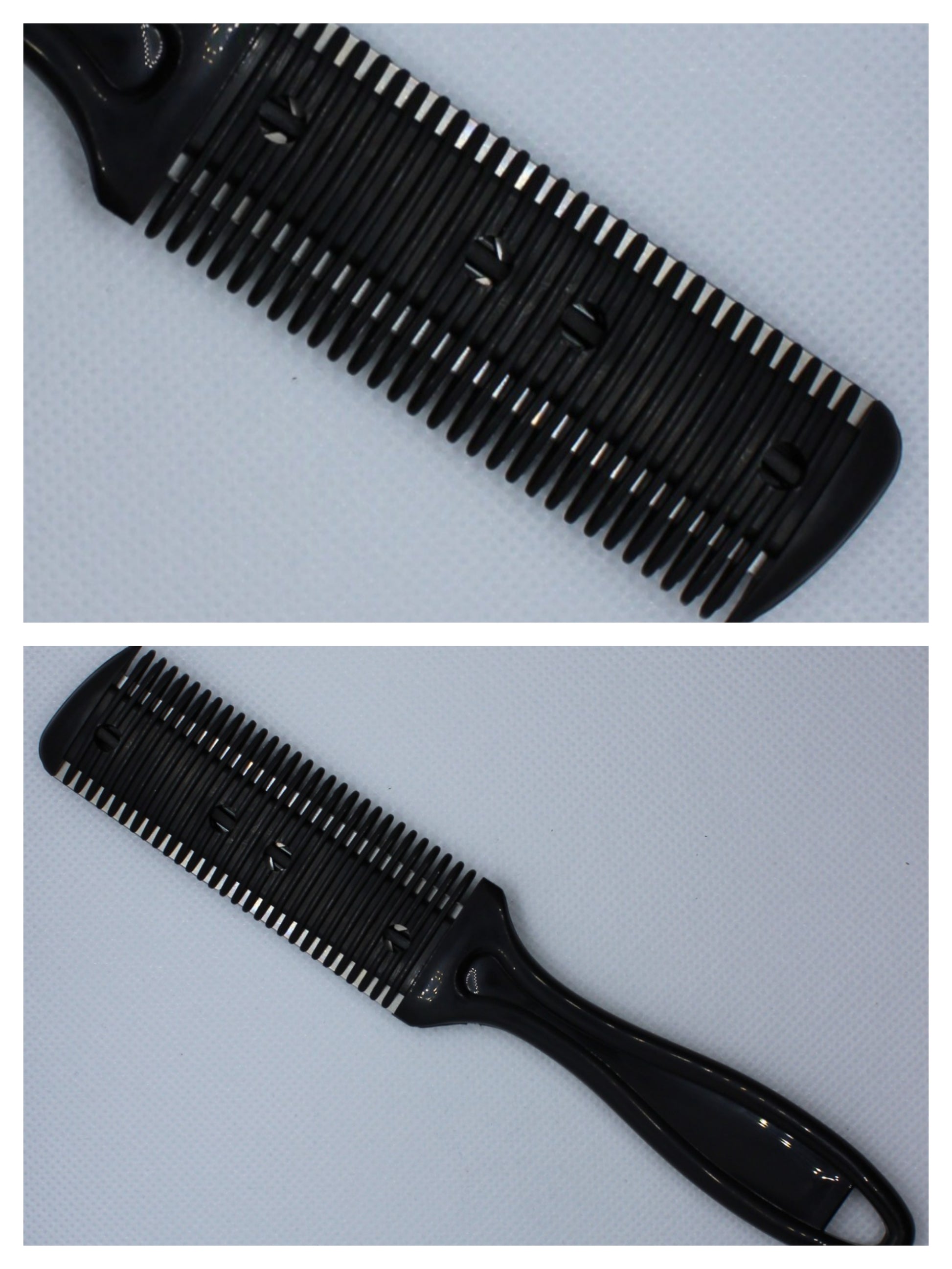 Trim kam, Kappers uitdunmesje met handvat. Om haar of haarwerken uit te dunnen.