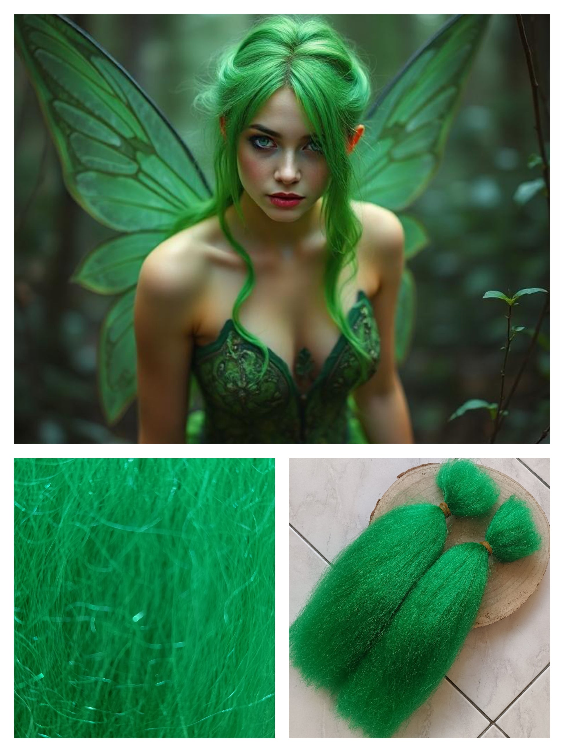 Yak haar in mooie licht groene kleur. Lengte is 12"-14"/ 30-35cm.