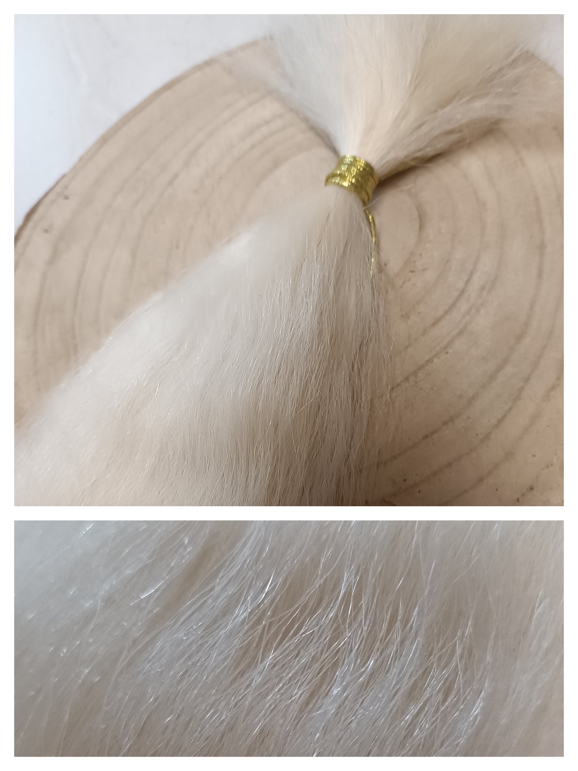 Yak tail haar, gewassen , met natuurlijke krul en geen chemische behandeling . Kleur is creme/wit. Lengte is 12"/30cm . Kan gekruld / geverft, of met zilvershampoo wat witter gemaakt worden. Perfect voor het knopen/punchen van snorren, baarden , bakkebaarden.